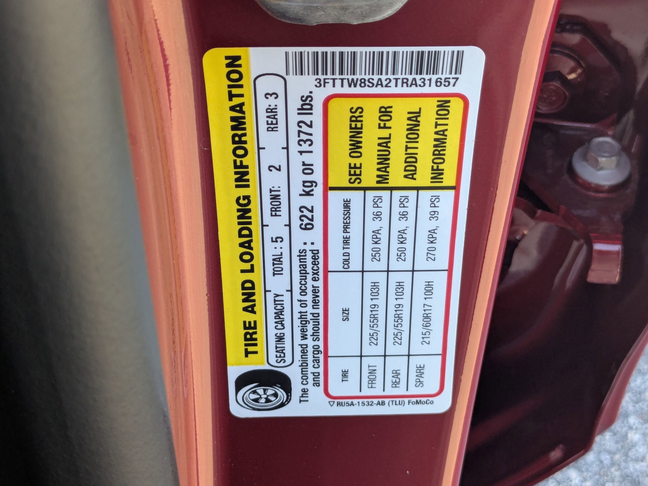 - Front Tire Size: P225/55HR19
