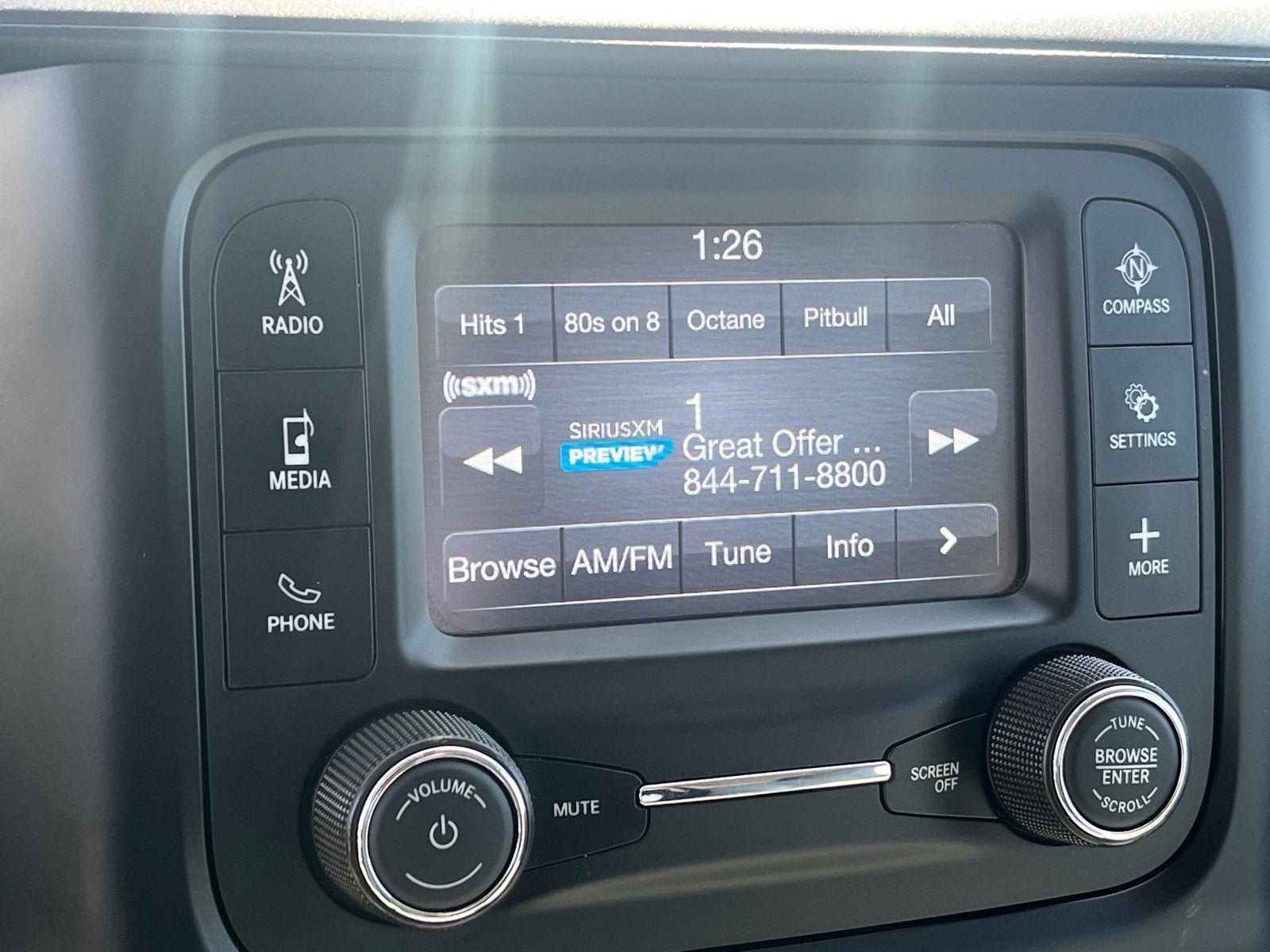 - RADIO: UCONNECT 3 W/5 DISPLAY -inc: 5.0 Touchscreen Display SiriusXM Satellite Radio (subscription required) For More Info Call 800-643-2112 GPS Antenna Input Temperature & Compass Gauge