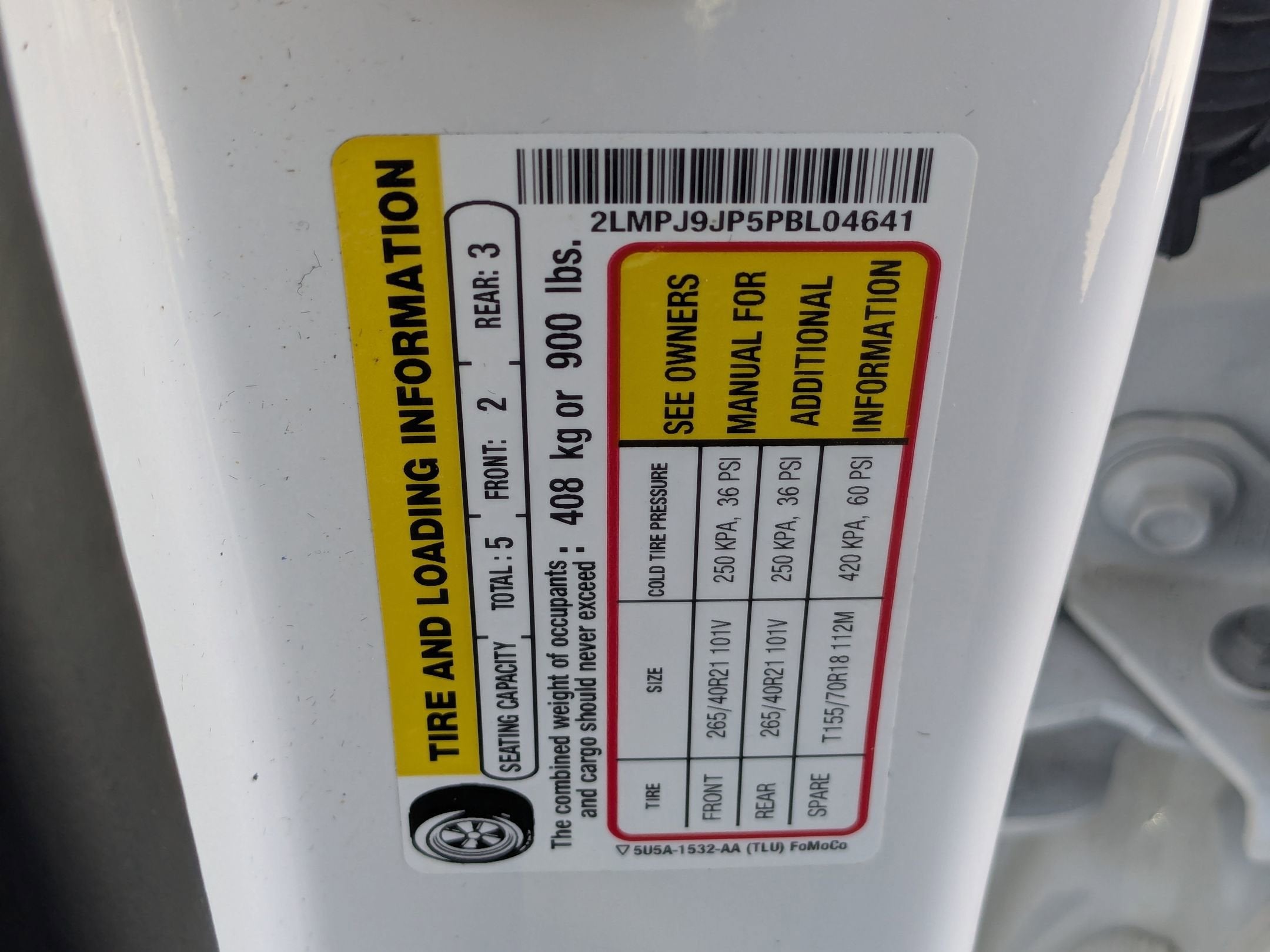 - Front Tire Size: P265/40VR21