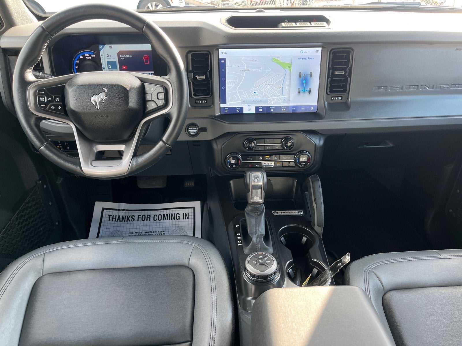 Step inside the Bronco Big Bend and you'll be greeted by a spacious and well-appointed interior, featuring Marine Grade Vinyl Bucket Seats, Dual-Zone Electronic Automatic Temperature Control, and a host of other premium amenities. The Ambient Footwell Lighting and Hard Top Sound Deadening Headliner add a touch of sophistication and comfort to your driving experience.